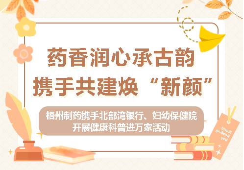 梧州制藥攜手北部灣銀行、婦幼保健院開(kāi)展健康科普進(jìn)萬(wàn)家活動(dòng)藥香潤(rùn)心承古韻 攜手共建煥“新顏”7月19日上午,梧州制藥聯(lián)合廣西北部灣銀行梧州分行營(yíng)業(yè)部、梧州市婦幼保健院,在北部灣銀行大廳舉辦“中醫(yī)文化潤(rùn)心